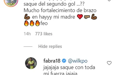 Barrios, hoy en el Zenit de Rusia, también se metió en la conversación y felicitó a su amigo por lo realizado el sábado pasado: “Jajajajaja por eso ese saque del segundo gol …?? Mucho fortalecimiento de brazo”, le escribió a lo que le respondieron: “Jajajaja saque con toda mi fuerza jajaja”.