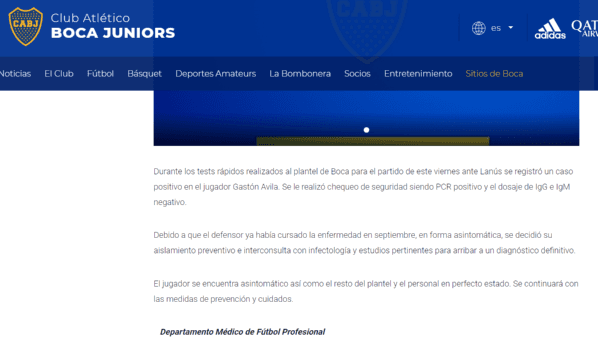 Una gran sorpresa se llevaron los médicos de Boca al enterarse que uno de los hisopados de rutina terminó arrojando un resultado positivo.