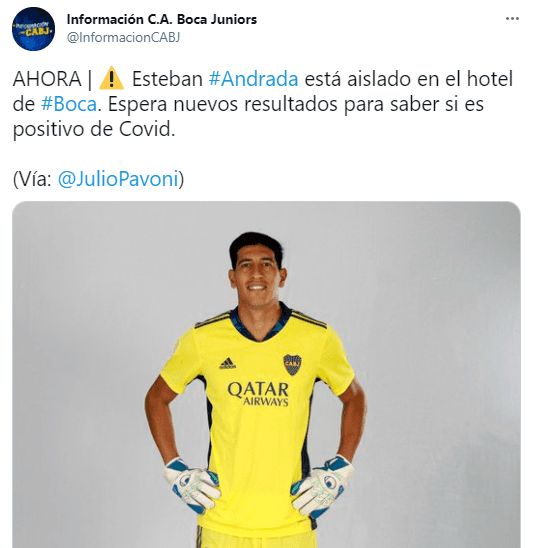 Es que Esteban Andrada, quien había estado aislado por contacto estrecho las últimas semanas, habría dado positivo en uno de los controles realizados por las autoridades ecuatorianas. Ahora, según informan, un equipo médico está llegando al hotel donde se encuentra alejado elXeneizepara testear a toda la delegación.