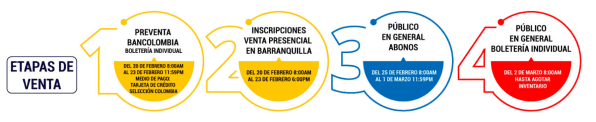 Finalmente, desde el 2 de marzo, las boletas que no se vendan de abonos y de los usuarios de la tarjeta de crédito de la Selección, quedarán disponibles al público hasta que se agoten las existencias.