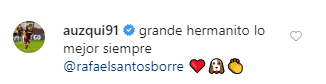 “Grande hermanito, lo mejor siempre”, fue el mensaje que le dejó el actual jugador de Lanús. El Perro es muy cercano a Borré y lo mostró en Instagram.