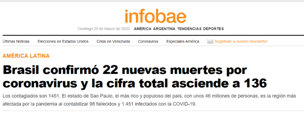 Pese a que el presidente menosprecie, la enfermedad se está propagando muy rápido por todo el país. Parece difícil que no se convierta todo en una tragedia con muchos más muertos.