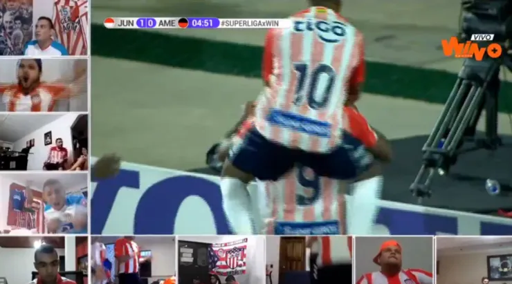 Acudiendo a las nuevas tecnologías, Win Sports se las ingenió para reunir a un buen cúmulo de hinchas para formar en la transmisión una especie de “Tribuna Virtual”. Seguidores de América y Junior se conectaron a través de una plataforma de videollamada masiva para acompañar la transmisión y alentar desde sus casas a los equipos que disputan el título de la Superliga Águila 2020.