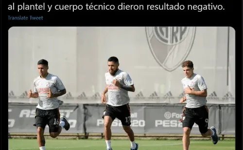 “Todos los hisopados realizados hoy al plantel y cuerpo técnico dieron resultado negativo”, escribió la cuenta oficial de River en Twitter, descartando cualquier tipo de baja por coronavirus.