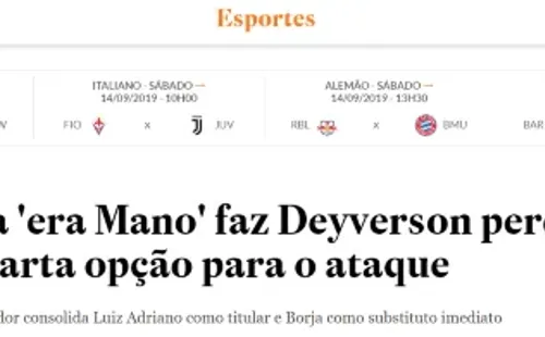 “La situación de los delanteros en Palmeiras se encuentra de la siguiente manera: Deyverson ha perdido considerablemente terreno. El colombiano Borja volvió a tener importante y es el primer suplente. Y Luiz Adriano es el delantero centro preferido por Mano”, indicó el diario ‘O Estado’.