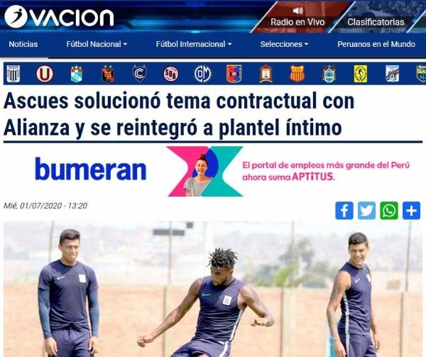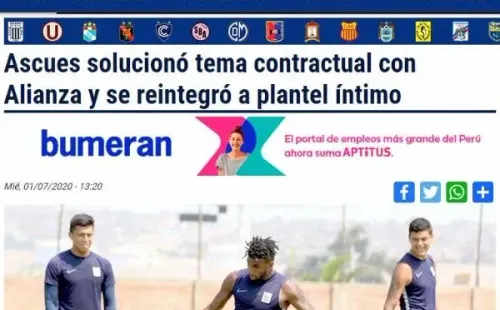 Este miércoles, Ovación informó lo siguiente: “Ascues solucionó tema contractual con Alianza y se reintegró a plantel íntimo”. Según este medio, el volante pasará ahora las pruebas por COVID-19.