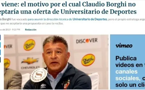 No es buena la actualidad en el cuadro crema. Los buenos resultados no han vuelto aparecer y el plantel finalmente quedó sin opciones de pelea para el campeonato del primer semestre. En últimas horas se conoció que Claudio Borghi no tiene interés en dirigir a la U.