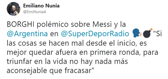 Lógicamente, así como muchos ex deportistas e integrantes del elenco nacional se hicieron eco de dicha derrota, Claudio Borghi no fue la excepción y se hizo escuchar.