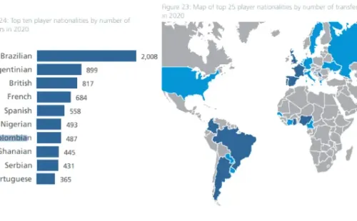 Por primera vez en los últimos 10 años hubo una reducción de 18.047 traspasos internacionales en el 2019, a 17.077 en el 2020, sin embargo, para Colombia los números sí siguen siendo muy buenos en este ítem.