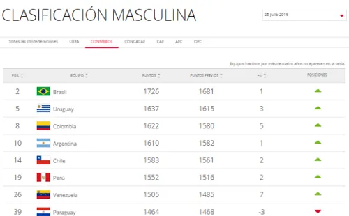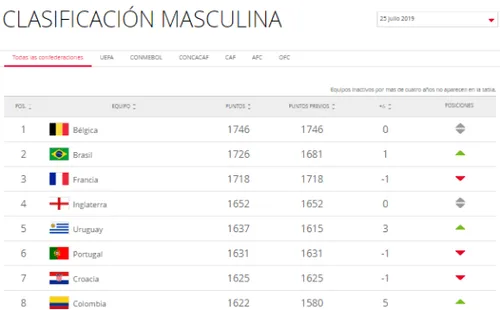 Habiendo culminado la Copa, el Ranking FIFA finalmente fue actualizado este 25 de julio. Con poco movimiento en el Top-10, una de las sorpresas presentes fue la gran escalada de Colombia.