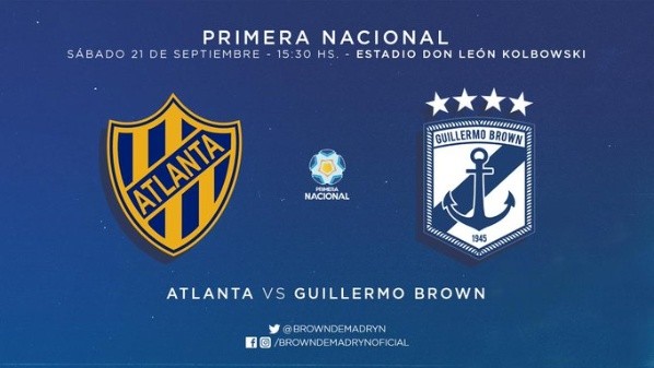 Atlanta y Guillermo Brown de Puerto Madryn se miden este sábado 21 de septiembre por la sexta fecha de la Primera Nacional.