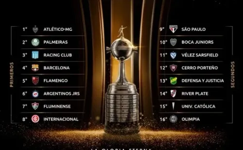 BOMBO 1: Atlético Mineiro, Palmeiras, Racing, Barcelona SC, Flamengo, Argentinos Juniors, Fluminense, Internacional