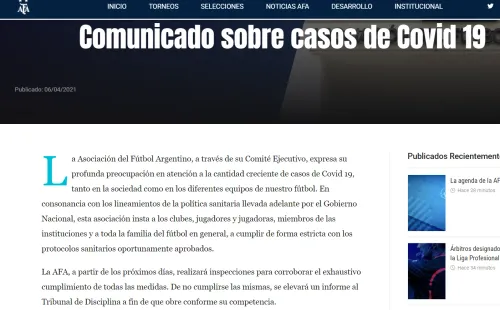 “La Asociación del Fútbol Argentino, a través de su Comité Ejecutivo, expresa su profunda preocupación en atención a la cantidad creciente de casos de Covid 19, tanto en la sociedad como en los diferentes equipos de nuestro fútbol”, comenzó exteriorizando la Asociación del Fútbol Argentino en su comunicado vertido en los canales oficiales.