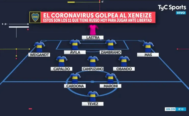 Con 18 casos de COVID-19, así sería el XI de Boca ante Libertad