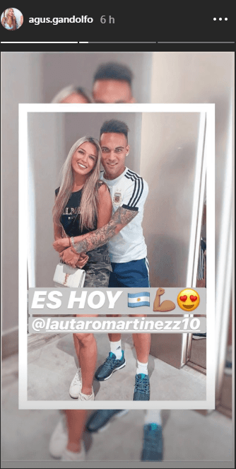 En la previa del encuentro,Agus Gandolfo, su novia, subió a Instagram una foto ya en el Mineirão y con su camiseta.