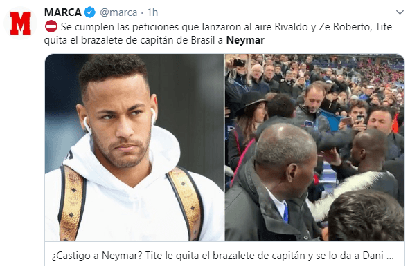 Tal vez por las presiones externas que ejercieron exfutbolistasde la Canarinha y parte de la prensa, tal vez con intención de cuidar al crack de la crítica malintencionada; Tite decidió quitar a Neymar la capitanía de Brasil para la Copa América.