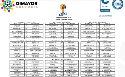 Fixture oficial para la Liga Águila II-2019: