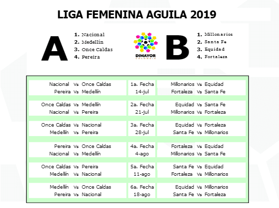 Desde el 14 de julio hasta el 18 de agosto, la Liga Femenina Águila desarrollará su fase de grupos para determinar los mejores equipos por región. Ese fue el criterio para conformar los grupos del certamen.