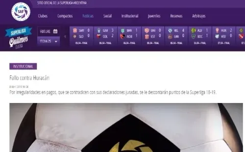 De todas maneras, la Superliga confirmó que Huracán mantendrá su lugar en la tabla dep osiciones de la última edición de la Superliag Argentina de Primera División y no habrá cambios en la Copa de la Superliga.