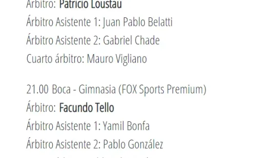 Boca, que pudo acortar la distancia el pasado fin de semana para llegar con chances, recibirá a Gimnasia de La Plata y el encargado de impartir justicia será Facundo Tello.