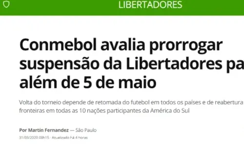 Cuando se decidió la suspensión de la competición más importante del fútbol sudamericano a nivel de clubes, se había previsto que esta pudiera reanudarse desde el 5 de mayo.