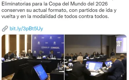 “El Consejo de la CONMEBOL, reunido en Santiago de Chile, resolvió por decisión unánime solicitar a la FIFA que las Eliminatorias para la Copa del Mundo del 2026 conserven su actual formato, con partidos de idea y vuelta y en la modalidad de todos contra todos. Después de Catar, la Copa del Mundo pasará a contar con 48 selecciones participantes“, expresó Conmebol en un comunicado.
