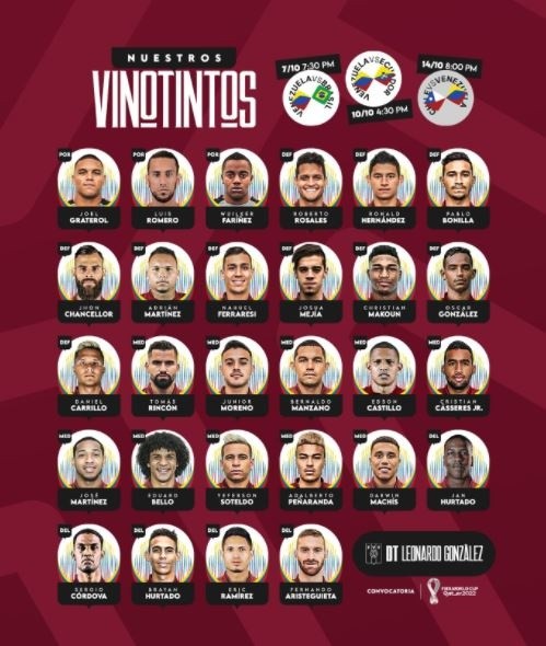Arqueros: Wuilker Faríñez; Joel Graterol yLuis Romero.
