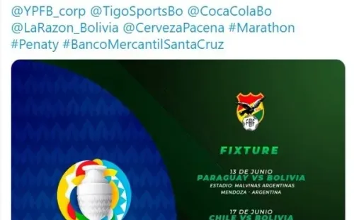 Ya no queda mucho tiempo, en cuanto finalice la fase de grupos de la Copa Libertadores y Sudamericana, laCopa América 2021con sedes en Colombia (por ahora) y Argentina va a tener lugar. En esta oportunidad, te vamos a contar contra qué país y cuándo va a estar realizándose el debut de laSelección de Boliviaen el certamen.