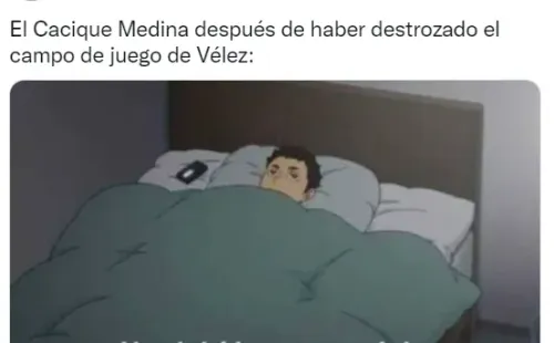 Además, se burlaron del estado del campo de juego en el Amalfitani, que en la previa generó debate sobre si había sido una casualidad su desgaste o una estrategia diseñada por el Cacique Medina. Incluso, el famoso productor Bizarrap, confeso hincha de Vélez, no se salvó de convertirse en meme.