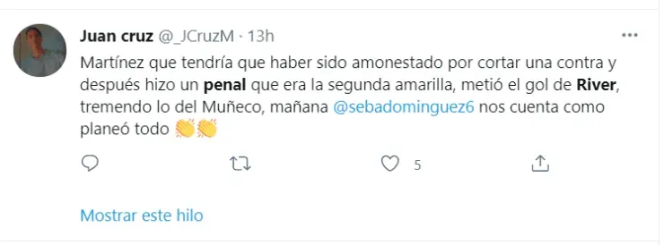 Explotaron las redes sociales. En el momento y hasta horas después de que el partido termine. Pasa que la polémica dijo presente en el Monumental cuando David Martínez agarró claramente del brazo a Borja dentro del área, evitando que el delantero llegue a impactar la pelota para anotar en el arco de Franco Armani, cosa que el árbitro pareció no advertir.