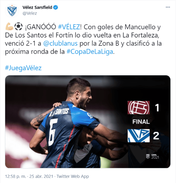 La fecha 11 se sigue disputando y quedan dos más para que termine la primera fase de la Copa de la Liga Profesional. Y más allá de que queden varios puntos en juego, ya tenemos al primer clasificado a cuartos de final: el gran Vélez de Mauricio Pellegrino, que le ganó de visitante a Lanús y de esa manera se aseguró estar entre los ocho mejores.