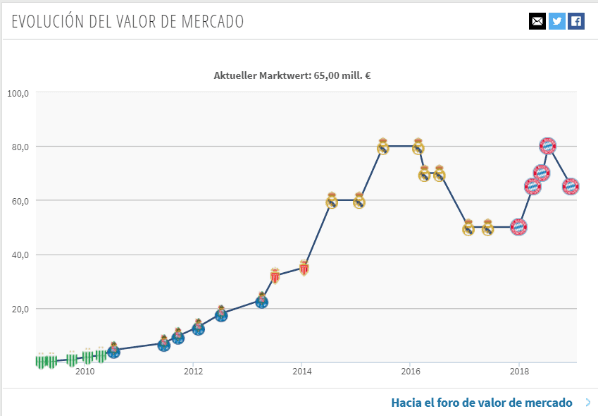 En este momento, James Rodríguez está avaluado en 65 millones de euros, según Transfermarkt, el portal especializado en el mercado europeo. Según la prensa española, el Real Madrid plantea vender a James en no menos de 70 millones de euros y allí se reducen las opciones de los equipos que pueden pagarlo.