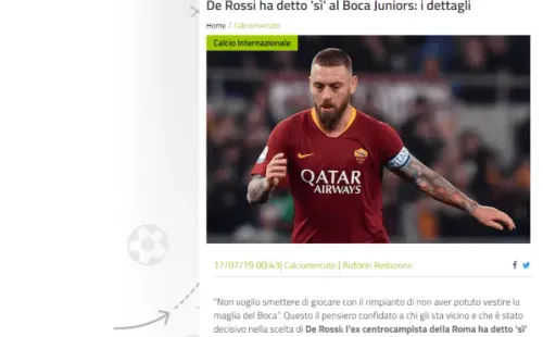 En los próximos días,Daniele De Rossillegaría a Buenos Aires para firmar un contrato por ocho meses conBoca.