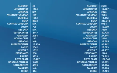 En todo este contexto, fue la Asociación del Fútbol Argentina que publicó un largo documento contando la situación de cada equipo, y una tabla en particular es la que más llamó la atención: se trata de una lista con la cantidad de socios que tiene cada uno en el presente, habiendo un liderazgo enorme de Boca por sobre todo el resto.