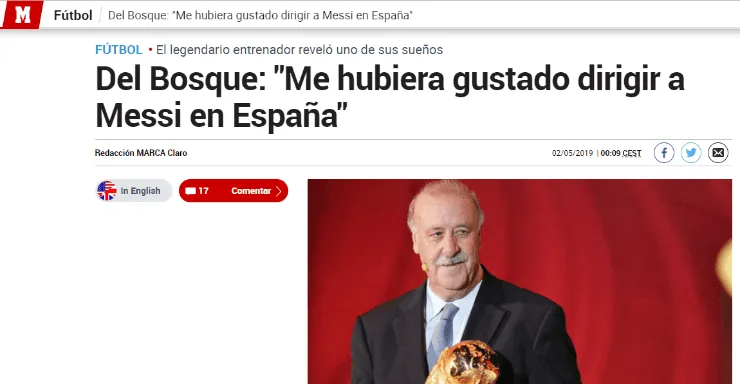 Luego de hablar de Lionel Messi por un buen rato, Del Bosque se trasladó al fútbol argentino y comentó: “No tengo un recuerdo especial de un equipo argentino, pero si tengo un recuerdo de un estadio como La Bombonera”.