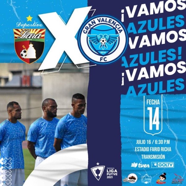 Por una nueva fecha de laLiga Futve,Deportivo Lararecibe a su similar deGran Valenciaen un partido que se desarrollará este viernes 16de julio. Las emociones de este encuentro serán transmitidasEN VIVO Y EN DIRECTOa través de la pantalla deTVES, GolTV Play.