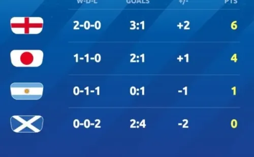 La Selección Argentina comenzó el Mundial con un empate ante Japón y una derrota a manos de Inglaterra. De esta manera, el equipo dirigido por Carlos Borrello marcha tercero en el Grupo D con 1 punto y se aseguraría la clasificación con un triunfo.