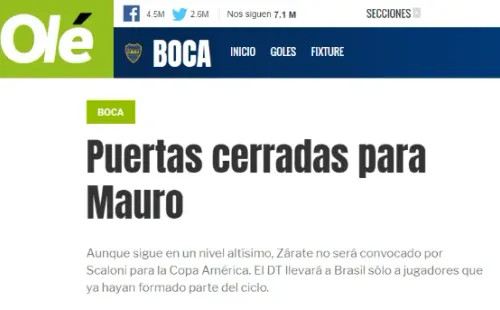 Bueno, el diario Olé hoy tiró que Zárate no será llamado por Lionel Scaloni para la próxima Copa América.
