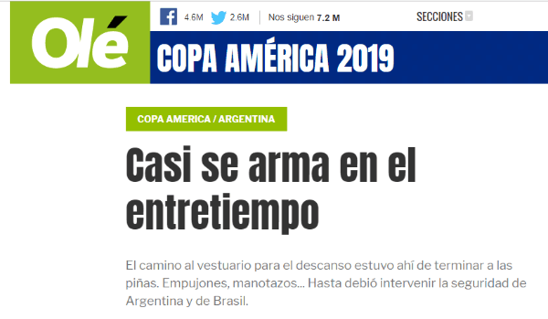 En el Mineirão, la intensidad de la primera semifinal de laCopa América 2019se vio desde el pitazo inicial.