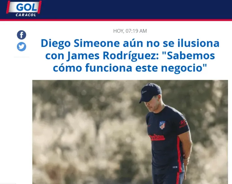 Según detalló Gol Caracol, en esta oportunidad Diego Simeone se hizo eco del posible arribo de Rodríguez y confesó: “Sabemos como funciona este negocio y los intereses que tenemos cada uno, pero al final creo que hemos conseguido lo que nos acerca al objetivo que teníamos hacer unos meses”