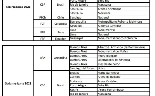 Por nuestro país, Medellín y Barranquilla se postularon para recibir lafinal de Copa Libertadores 2023. La Copa Sudamericana 2023 solo recibió la propuesta del estadio Atanasio Girardot.