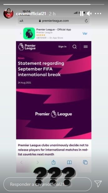 Ante el comunicado expedido por la organización que rige el fútbol en Inglaterra, el atacante que aún no ha jugado con los Red Devils, se pronunció a través de su cuenta de Instagram, por medio de una historia en la que con signos de interrogación controvierte lo dicho por la Premier.