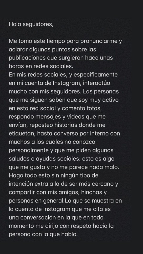 Por último, también les respondió a quienes decían que había borrado las fotos con Ana Siucho: “El tipo de contenido en mi cuenta es de fútbol y las historias de mi vida cotidiana. Creo que debemos ponerle un alto a esto y no jugar con la tranquilidad de las personas ni de sus familias”.