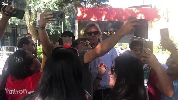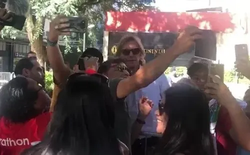 A las afueras del Hotel Intercontinental de Sao Paulo, un grupo de hinchas fue en busca del entrenador argentino para saludarlo con afecto y tomarse fotos con él.