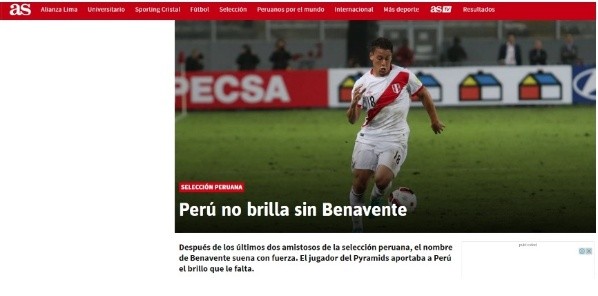 “Después de los últimos dos amistosos de la selección peruana, el nombre de Benavente suena con fuerza. El jugador del Pyramids aportaba a Perú el brillo que le falta”, agregó el medio especializado.