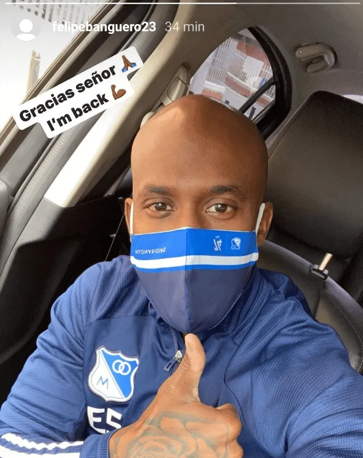 Tras el anuncio, varios jugadores de Millonarios celebraron el permiso para regresar a entrenar y uno de ellos fue Felipe Banguero. Aunque sus últimos meses no fueron los mejores (tras la polémica con Alberto Gamero), festejó el regreso, pero terminó metiendo un error en la foto que compartió en su Instagram. No se fijó y apareció con el tapabocas oficial de Millonarios al revés.