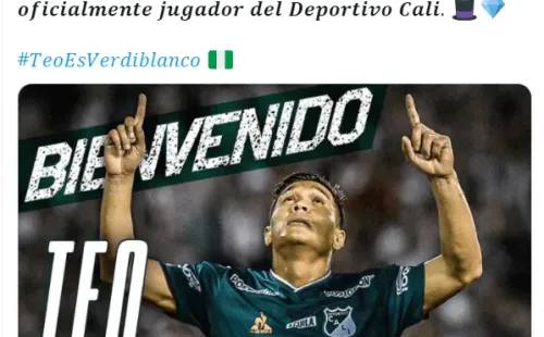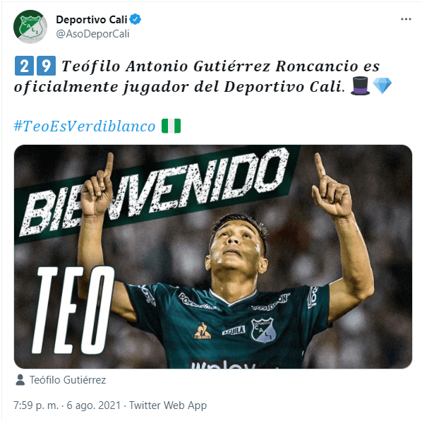 Este viernes, Deportivo Cali, anuncio a Teófilo Gutiérrez como nuevo atacante de la institución Azucarera. Luego de su fructífero paso por su amado Junior de Barranquilla, el ex River Plate, compareció ante los medios de comunicación tras ser anunciado a través de redes sociales.
