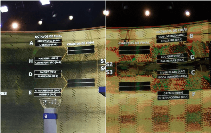 El resto de los cruces que salieron en el simulacro: B_ San Lorenzo (Arg) vs. Cruzeiro (Bra), G_ LDU Quito (Ecu) vs. Palmeiras (Bra) y F_ Gremio (Bra) vs. Internacional (Bra).