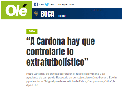 Ante esta situación, Hugo Gottardi, exayudante de Miguel Ángel Russo dialogó con Olé en una conversación en la cual recordó los polémicos incidentes que tuvo el cafetero anteriormente. “Hay que controlarle lo extrafutbolístico, quizás ahí tengas más problemas. Es buen jugador, no descubro nada, pero quizás un día te sale en el diario por un problema u otro”.