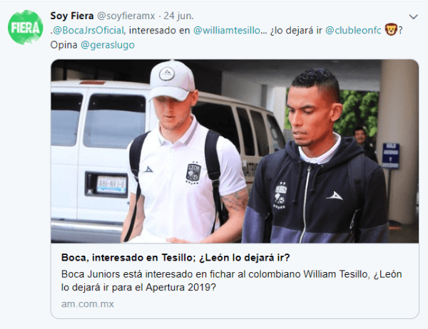 ⚠️�� Fue ofrecido a Boca el central colombiano William Tesillo. La semana que viene su representante (el mismo que Gago) se reúne con Burdisso. Actualmente esta en el Leon de la liga Mexicana, que pediría por su ficha no menos de 5 millones de dólares. A Alfaro le gusta mucho. pic.twitter.com/Cw1mnUD1jP